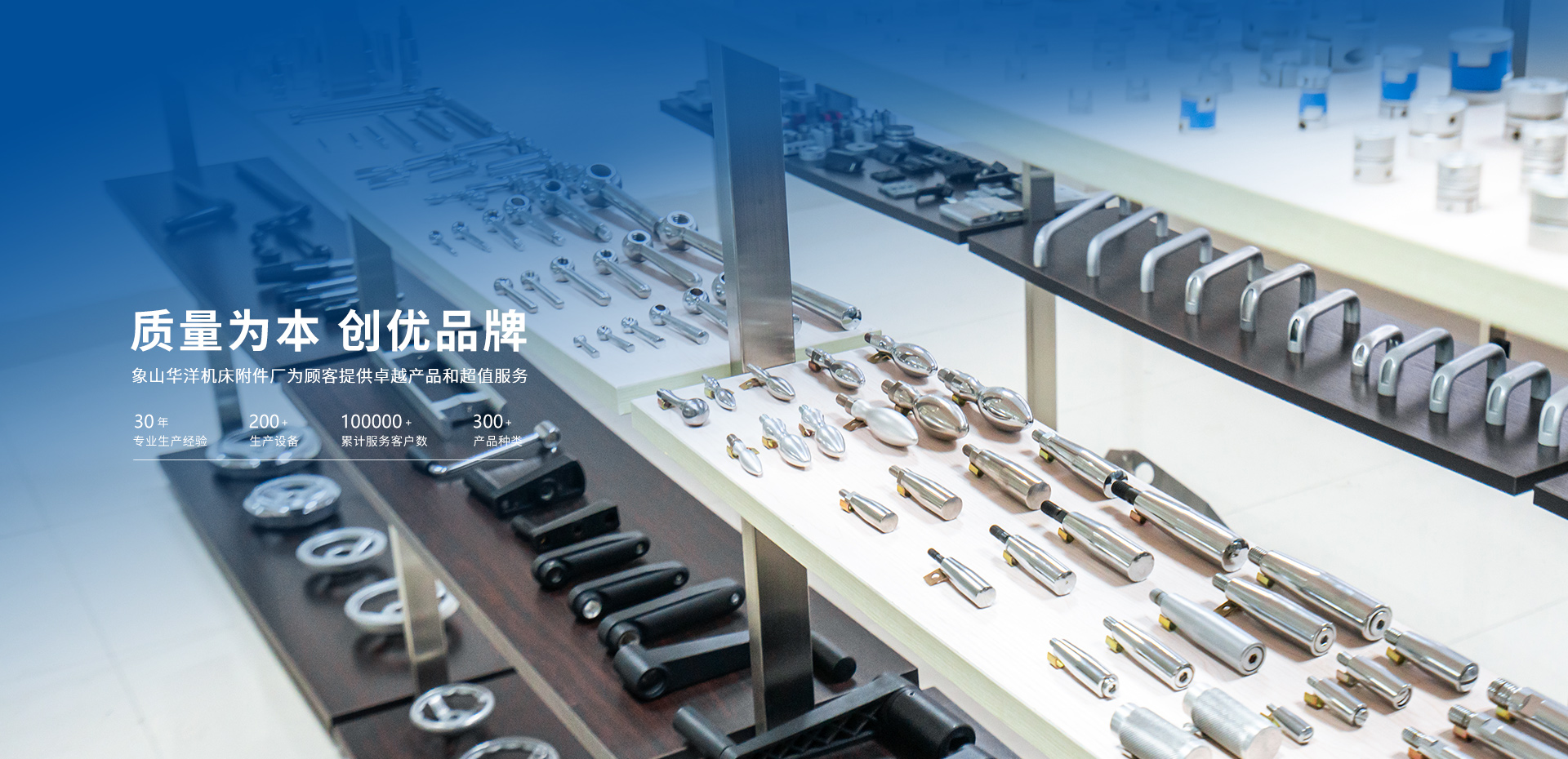 象山華洋機床附件廠創立于1993年,位于浙江省象山縣。專注于生產優質“華洋”系列機床附件,“華洋”系列機床附件目前擁有300余款品種,上千種規格尺寸,以其先進的工藝,優良的品質,齊全的規格,合理的價格,在國內外享有盛譽。主要產品有:手輪、手柄、把手、拉手等機床操作件;油標、油杯、潤滑泵、分配器;萬向節、聯軸器;位置顯示器、腳杯、刻度環、合頁、工作燈、冷卻管等機床附件系列產品。產品均采用國家及行業標準,質量可靠,深得國內外機床設備生產廠家,經銷商,貿易商及機床行業設計師等用戶的肯定和信賴。銷售網絡覆蓋全國各地,且有相當部分產品銷往德國、美國、日本、丹麥、韓國、臺灣等地。